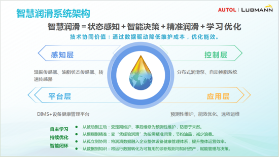 他強(qiáng)調(diào),智慧潤(rùn)滑不僅是技術(shù)的升級(jí),更是從“產(chǎn)品交付”到 “場(chǎng)景價(jià)值交付” 的根本轉(zhuǎn)變,通過(guò)“狀態(tài)感知、智能決策、精準(zhǔn)潤(rùn)滑、學(xué)習(xí)優(yōu)化”的技術(shù)架構(gòu),實(shí)現(xiàn)設(shè)備運(yùn)維從“定期維護(hù)”到“預(yù)測(cè)性潤(rùn)滑”的跨越。