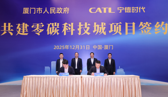 2025年12月31日,寧德時(shí)代與廈門(mén)市人民政府在廈門(mén)簽署戰(zhàn)略合作協(xié)議,雙方將共同建設(shè)零碳科技城,攜手探索零碳城市與零碳產(chǎn)業(yè)發(fā)展的新路徑。廈門(mén)市委常委、副市長(zhǎng)莊榮良與廈門(mén)時(shí)代總經(jīng)理陳偉峰代表雙方簽署協(xié)議。福建省委常委、廈門(mén)市委書(shū)記崔永輝,廈門(mén)市委副書(shū)記、市長(zhǎng)伍斌與寧德時(shí)代董事長(zhǎng)兼CEO曾毓群、寧德時(shí)代董事、區(qū)域管理總裁吳映明共同出席并見(jiàn)證簽約。
