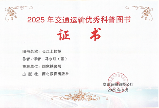 9月,交通運輸部公布2025年交通運輸優(yōu)秀科普微視頻和圖書名單,由湖北教育出版社和橋梁建設(shè)報精心打造、馬永紅著的科普著作《長江上的橋》榜上有名。