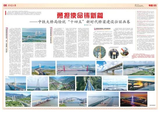 “十四五”期間,中鐵大橋局逢山開路、勇挑重?fù)?dān),助力高速鐵路、高速公路網(wǎng)加密成形,為區(qū)域經(jīng)濟發(fā)展注入磅礴動力,為百姓走向共同富裕鋪就康莊大道。參建了包括“八縱八橫”高速鐵路網(wǎng)在內(nèi)的重大鐵路工程以及公路交通運輸網(wǎng)絡(luò)工程,包括和若鐵路、沈白高鐵、張吉懷高鐵、福廈鐵路,云茂高速、銀百高速、蒲煙高速、廣深沿江高速等代表性工程,為國家綜合立體交通網(wǎng)主骨架的構(gòu)建注入大橋力量。