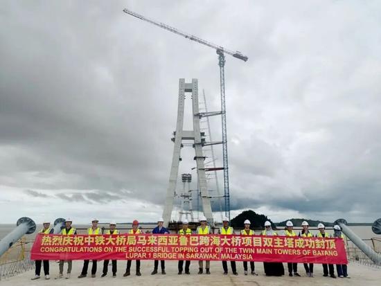 當(dāng)?shù)貢r間1月20日,馬來西亞砂撈越州沿海大道控制性工程魯巴跨海大橋26號墩主塔順利封頂。