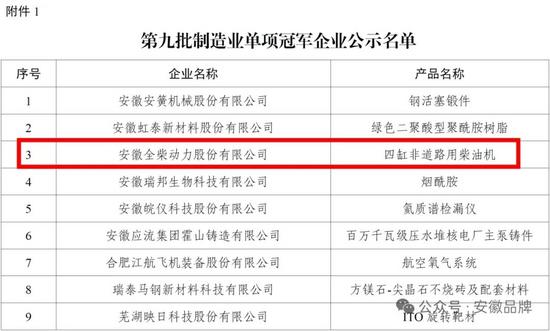 近日,安徽省工業(yè)和信息化廳公布2025年國家制造業(yè)單項(xiàng)冠軍企業(yè)(第九批)名單,安徽全柴動(dòng)力股份有限公司憑借在四缸非道路用柴油機(jī)領(lǐng)域的卓越表現(xiàn)成功入選。這一獎(jiǎng)項(xiàng)被譽(yù)為“制造業(yè)皇冠上的明珠”,代表中國制造業(yè)細(xì)分領(lǐng)域最高水平和最強(qiáng)市場實(shí)力。