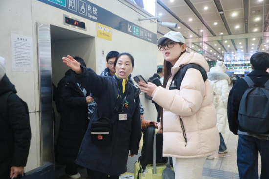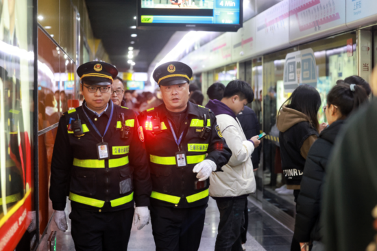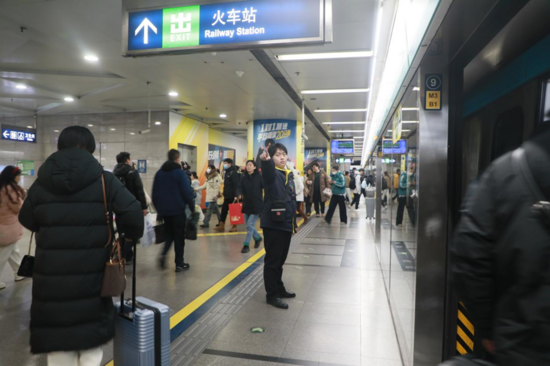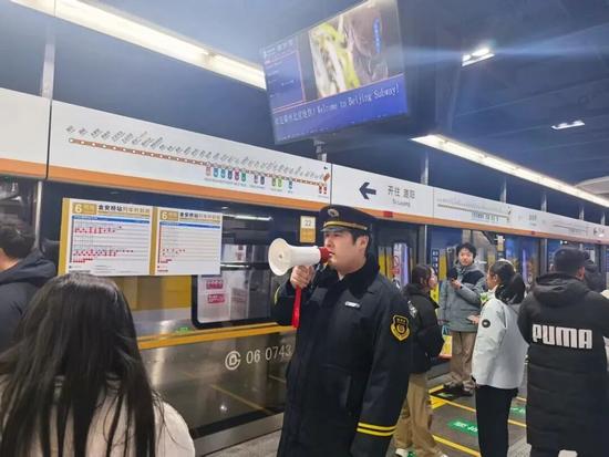 地鐵站務(wù)員現(xiàn)場幫助乘客規(guī)劃最優(yōu)回家路線,積極疏導(dǎo)客流。