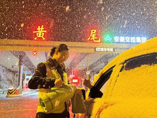 風(fēng)雪之中,沿線收費站區(qū)的“暖冬守護”持續(xù)升溫。懷遠收費站為過往司乘免費送上熱騰騰的包子和牛肉湯;蒙城西收費站工作人員幫助貨車司機重新固定雨布,避免貨物受損;各收費站還組織人員對收費車道、廣場等機械作業(yè)盲區(qū)進行人工清掃,確保站區(qū)暢通;便民服務(wù)臺持續(xù)供應(yīng)熱姜茶、熱粥,并提供手機充電、應(yīng)急藥品等服務(wù),讓“皖美高速”的溫情驅(qū)散跨年寒夜的凜冽。