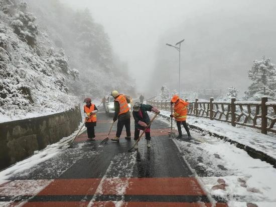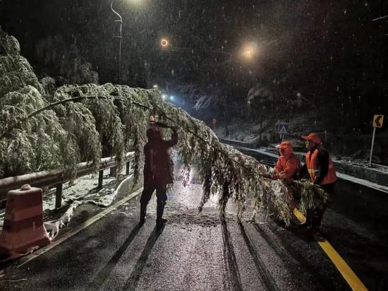 元旦首日,黃山公路部門迅速啟動應(yīng)急預(yù)案,應(yīng)急隊伍迅速響應(yīng),第一時間投入到保通保暢工作中。