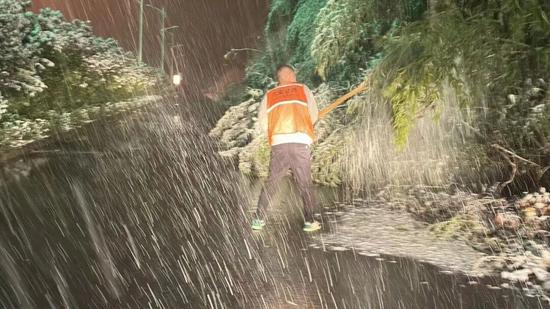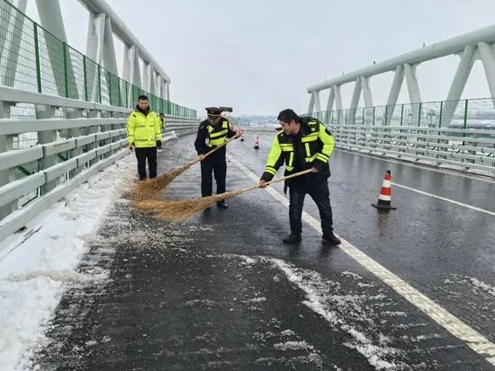 省高速公路路政支隊所屬大隊執(zhí)法人員連夜除雪。