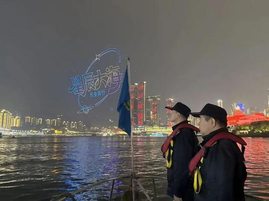 跨年夜,重慶海事部門以專業(yè)守護筑牢水上安全防線,采取“現(xiàn)場駐守+電子巡查”雙模式全方位保障,守護“新韻重慶”無人機燈光秀。部署海巡艇在禁航水域周邊不間斷巡航,海事執(zhí)法人員現(xiàn)場駐守,密切關(guān)注水域動態(tài),及時糾正影響表演和通航秩序的行為。同時,主動延伸服務(wù)觸角,聯(lián)合港航、水警、應(yīng)急等9部門設(shè)立服務(wù)站,為往來游客提供咨詢引導(dǎo)、應(yīng)急幫助等貼心服務(wù),引導(dǎo)市民遠離危險水域,用耐心叮囑守護觀演安全,讓“執(zhí)法+服務(wù)”的理念融入每一個細(xì)節(jié)。