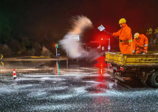 淮南市公路中心第一時間集結(jié)應(yīng)急搶險隊伍,對易結(jié)冰路段展開拉網(wǎng)式巡查,連夜開展融雪除冰作業(yè),快速消除路面打滑隱患。