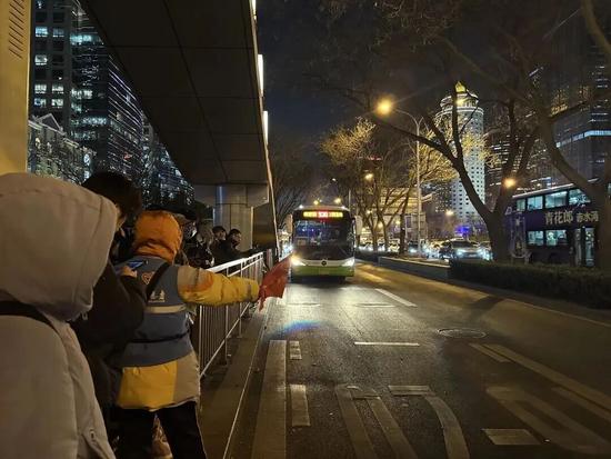 北京公交集團針對8個重點區(qū)域制定了“一點一策”方案,根據(jù)客流情況,增開區(qū)間車,服務(wù)市民出行。在客流集中區(qū)域,安排現(xiàn)場值守人員和機動運力,確保站臺無乘客滯留。開通2條免費擺渡線路,保障參加跨年活動游客出行。
