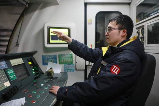 京港地鐵4號線客車司機駕駛列車 保障跨年夜乘客順暢出行。