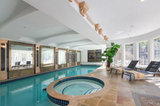 下層:家庭娛樂天花板!電影院、吧臺/酒窖、38 英尺室內(nèi)溫水泳池、按摩浴缸。3 個(gè)車庫,且有更多露天停車位。