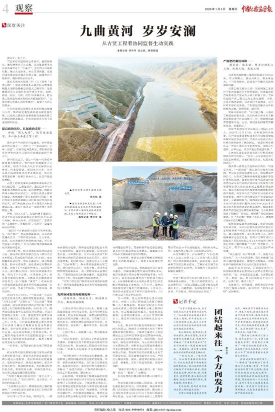 護(hù)航“國(guó)之大者”,監(jiān)督保障不能缺位。古賢工程涉及陜西省和山西省的13個(gè)縣40個(gè)鄉(xiāng)鎮(zhèn),參與主體多、涉及地區(qū)廣,是典型的“央地協(xié)作、多地協(xié)同”,僅靠單一監(jiān)督力量遠(yuǎn)遠(yuǎn)不夠。