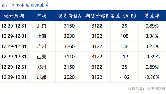 期貨層面本周遠期市場預期主導,震蕩收跌,資金偏向謹慎,全周成交清淡。周初,價格震蕩趨偏強,但走勢一般;周中,盡管有宏觀情緒的小幅提振,但市場仍在顯示面與開年利好之間進行權(quán)衡,震蕩特征較為明顯,反映市場信心較不足,全周呈現(xiàn)“區(qū)間震蕩”運行態(tài)勢。從期現(xiàn)基差來看,北京、上海、廣州、鄭州期貨表現(xiàn)貼水,西安、成都期貨表現(xiàn)升水。