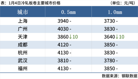冷軋板卷:1月日,全國(guó)24個(gè)主要城市1.0mm冷卷均價(jià)3845元/噸,較上一交易日下跌2元/噸。從日各地市場(chǎng)反饋的情況看,市場(chǎng)成交基本偏少,一方面主要是下游開工情況一般,對(duì)于原料的采購(gòu)意愿偏低;另一方面貿(mào)易商互相拿貨的情緒也不是很高。綜合來(lái)看,預(yù)計(jì)冷軋價(jià)格或?qū)⑷鮿?shì)震蕩運(yùn)行。