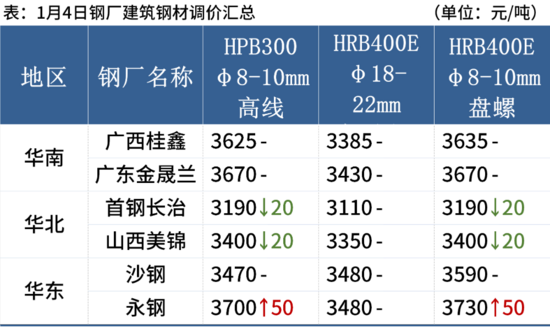 1月日,2家鋼廠下調(diào)建筑鋼材出廠價(jià)20元/噸。沙鋼1月上旬出廠價(jià)持平,永鋼盤螺、高線上調(diào)50元/噸。
