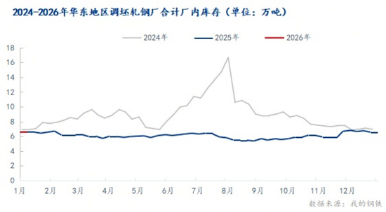 華東地區(qū)樣本調(diào)坯軋鋼企業(yè)48條軋線(xiàn)本周產(chǎn)量12.22萬(wàn)噸,周環(huán)比減少0.63萬(wàn)噸;產(chǎn)能利用率21.17%,周環(huán)比減少1.09%;廠內(nèi)成品庫(kù)存6.55萬(wàn)噸,周環(huán)比持平。
