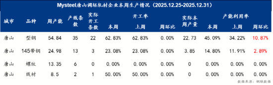 表-2 唐山調(diào)坯軋材企業(yè)本周生產(chǎn)情況