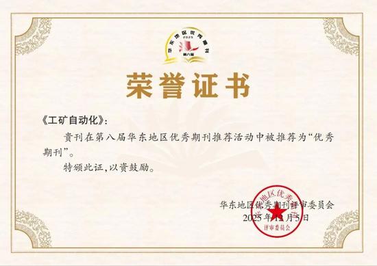 《工礦自動(dòng)化》入選第八屆華東地區(qū)優(yōu)秀期刊2025年度江蘇期刊明珠獎(jiǎng)優(yōu)秀期刊。