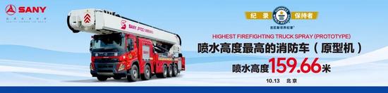 2025年,三一自主研發(fā)的JP100舉高噴射消防車,憑借159.66米的極限噴射高度,成功榮獲“噴水高度最高的消防車(原型機)”吉尼斯世界紀錄?認證,創(chuàng)新實力成就世界之最。