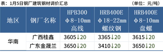 1月5日,2家鋼廠建筑鋼材出廠價(jià)下調(diào)20元/噸。