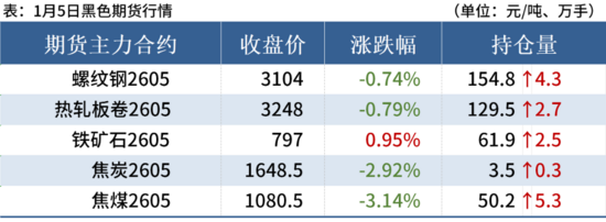 焦炭:1月5價(jià)格暫穩(wěn)運(yùn)行,隨著近期煤價(jià)有所回落,目前焦化廠利潤(rùn)有所修復(fù),目前處于盈虧線邊緣,各焦企保持正常開工節(jié)奏,個(gè)別焦企有小幅減產(chǎn),近期出貨較為順暢,大多企業(yè)維持低庫(kù)存運(yùn)行;下游方面,鋼廠庫(kù)存正常消耗,但鋼廠利潤(rùn)不佳,且終端消費(fèi)一般,成材累庫(kù)現(xiàn)象存在,預(yù)計(jì)近期焦炭?jī)r(jià)格偏穩(wěn)運(yùn)行