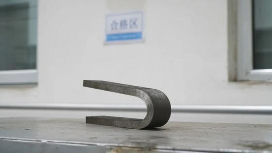 圖為寬厚板樣品在實驗室做彎曲實驗。