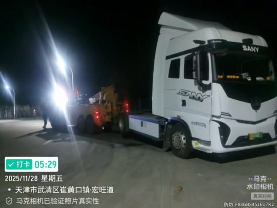 深夜近12點,天津武清區(qū),一位卡智匯司機駕駛SE636電動重卡時,因電池電量耗盡(SOC僅剩5%)突發(fā)停機。接到客戶求助后,直服工程師劉博忠秉持“客戶第一”理念,立即驅(qū)車奔赴現(xiàn)場。80公里夜路,視線受限、氣溫低至零下2-3℃,重重阻礙之下,他于次日凌晨2點抵達故障地點,用“三一速度”為客戶點亮希望。
