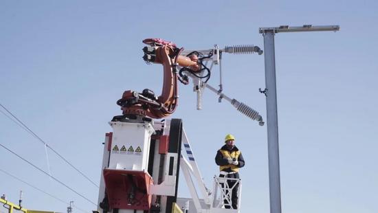 腕臂智能化安裝車,能夠使腕臂安裝機(jī)械臂自動找正腕臂安裝位置。苗 達(dá)攝