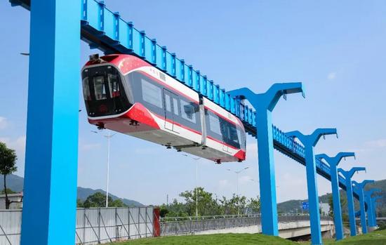 運(yùn)行在世界首條稀土永磁磁浮軌道交通工程試驗(yàn)線上的“興國號”列車,設(shè)計時速80公里,可無人自動駕駛。潘萬齊攝