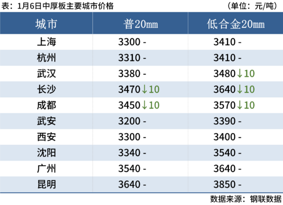 中厚板:1月6日,全國24個主要城市20mm普板均價3370元/噸,較上一交易日跌2元/噸。供應(yīng)端保持平穩(wěn),周內(nèi)暫無新增檢修復(fù)產(chǎn)計劃,鋼廠生產(chǎn)節(jié)奏穩(wěn)定,中厚板產(chǎn)量窄幅波動,市場資源供應(yīng)量充足,未形成明顯供給收縮壓力。需求端淡季弱勢難改,基建、鋼構(gòu)等下游行業(yè)仍以剛需采購為主,受期貨情緒與成本托底價格下行空間有限,預(yù)計日中厚板市場價格或維持窄幅震蕩運行