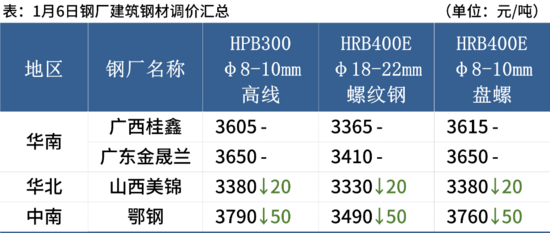 1月6日,2家鋼廠下調(diào)建筑鋼材價格20-50元/噸。