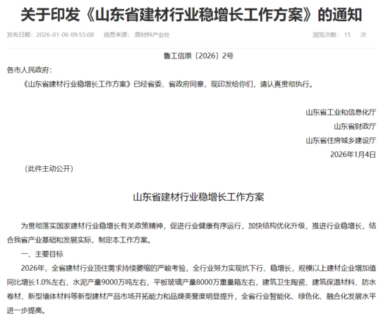 日前,山東省工業(yè)和信息化廳、財(cái)政廳、住房城鄉(xiāng)建設(shè)廳關(guān)于印發(fā)《山東省建材行業(yè)穩(wěn)增長(zhǎng)工作方案》的通知(以下簡(jiǎn)稱“方案”)稱,為貫徹落實(shí)國(guó)家建材行業(yè)穩(wěn)增長(zhǎng)有關(guān)政策精神,促進(jìn)行業(yè)健康有序運(yùn)行,加快結(jié)構(gòu)優(yōu)化升級(jí),推進(jìn)行業(yè)穩(wěn)增長(zhǎng),結(jié)合山東省產(chǎn)業(yè)基礎(chǔ)和發(fā)展實(shí)際,制定本工作方案。