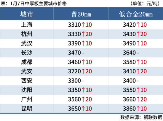 中厚板:1月日,全國24個主要城市20mm普板均價3382元/噸,較上一交易日上漲12元/噸?,F貨市場交投氛圍較濃,下游需求釋放程度加大。就華中地區(qū)來看,近期中厚板鋼廠投放量打折程度減輕,一單一議鎖單資源到貨量增多,本周市場總體到貨量增大,目前整體庫存小幅累庫。同時受近期成交情況疊加盤面等多因素影響,市場商家多持觀望態(tài)度。綜合來看,預計8日中厚板價格延續(xù)震蕩上行態(tài)勢。