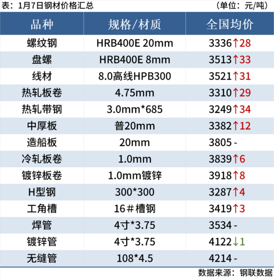 1月日,國內鋼材市場上漲為主,唐山遷安普方坯資源出廠含稅上調50報2980元/噸。7日焦煤、焦炭期貨漲停,帶動黑色期貨全線大漲,鋼材現貨市場量價齊升。