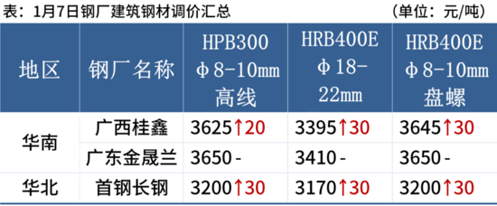 1月日,2家鋼廠上調建筑鋼材出廠價30元/噸。