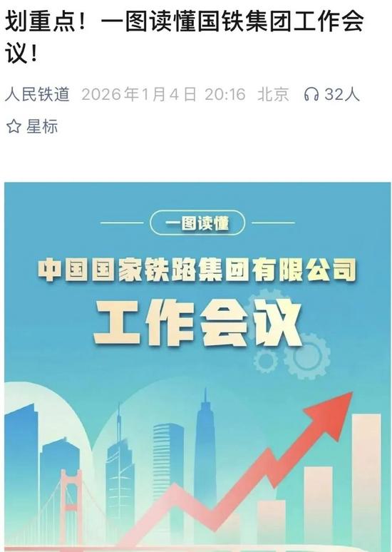 日月其邁,時盛歲新。2026年伊始,中國國家鐵路集團有限公司工作會議在北京召開,全面總結2025年和“十四五”鐵路工作取得的顯著成效,明確提出“十五五”加快建設世界一流鐵路企業(yè)的目標任務和做好鐵路工作的規(guī)律性認識,具體部署2026年鐵路重點工作。全路干部職工迅速掀起學習貫徹會議精神熱潮,紛紛表示,要更加緊密地團結在以習近平同志為核心的黨中央周圍,全面貫徹落實國鐵集團黨組部署要求,聚焦“五個世界一流”目標任務,團結一心、砥礪奮進,扎實推動鐵路高質(zhì)量發(fā)展和現(xiàn)代化建設,加快建設世界一流鐵路企業(yè),奮力實現(xiàn)“十五五”良好開局,為推進中國式現(xiàn)代化建設貢獻鐵路力量。