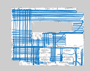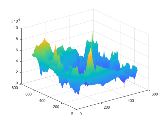 激光雷達(dá)記錄的采集路線(圖9)底圖為激光雷達(dá)生成的平面點(diǎn)云圖。通過采圖裝置獲得采集路線的地磁場數(shù)據(jù),通過雙線性插值方法,將原始磁場數(shù)據(jù)均勻網(wǎng)格化,得到路線上均勻分布的磁場數(shù)據(jù),均勻網(wǎng)格化后的地磁場等值線分布如圖10所示,網(wǎng)格化的磁場三維剖面如圖11所示。