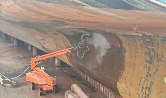 痛點(diǎn)一:效率,人工除銹速度慢,嚴(yán)重制約船塢周轉(zhuǎn)效率。
