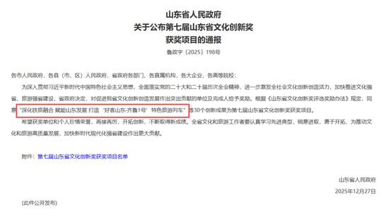此次獲獎(jiǎng)是山東省政府對(duì)山東鐵投集團(tuán)創(chuàng)新實(shí)踐與責(zé)任擔(dān)當(dāng)?shù)母叨日J(rèn)可。未來(lái),山東鐵投集團(tuán)將堅(jiān)持“1234”改革發(fā)展思路,持續(xù)深化鐵旅融合創(chuàng)新,以更多優(yōu)質(zhì)文旅產(chǎn)品助力齊魯文化活化傳承與區(qū)域經(jīng)濟(jì)協(xié)同發(fā)展,為文化強(qiáng)省、旅游強(qiáng)省建設(shè)貢獻(xiàn)鐵投力量。