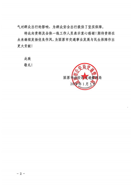 近日,寧夏地區(qū)連續(xù)降雪給群眾出行造成嚴(yán)重影響。公路運(yùn)營公司銀昆項(xiàng)目經(jīng)理部聞雪即動(dòng),高效完成寧夏銀昆段除雪保暢任務(wù),分別收到寧夏交通運(yùn)輸綜合執(zhí)法監(jiān)督局固原分局、寧夏交通運(yùn)輸綜合執(zhí)法監(jiān)督局吳忠分局、固原市公安局交通管理局的致信表揚(yáng)。