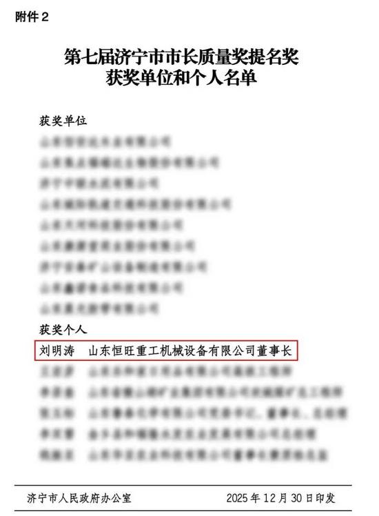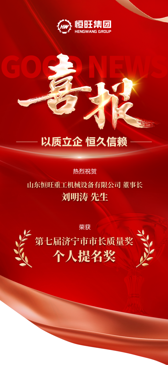 近日,濟(jì)寧市人民政府對(duì)第七屆市長質(zhì)量獎(jiǎng)及提名獎(jiǎng)獲獎(jiǎng)單位和個(gè)人進(jìn)行通報(bào)表彰,山東恒旺重工機(jī)械設(shè)備有限公司董事長劉明濤憑借在質(zhì)量管理領(lǐng)域的卓越實(shí)踐與突出成效,成功斬獲個(gè)人提名獎(jiǎng),這是政府與行業(yè)對(duì)其深耕質(zhì)量、引領(lǐng)發(fā)展的高度認(rèn)可,更是恒旺重工堅(jiān)守品質(zhì)、追求卓越的重要里程碑。