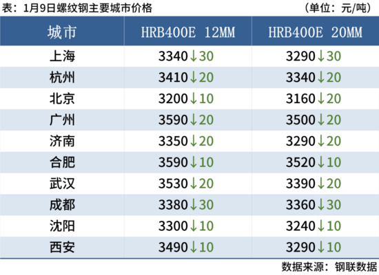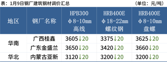 1月9日,3家鋼廠下調(diào)建筑鋼材價格20元/噸。