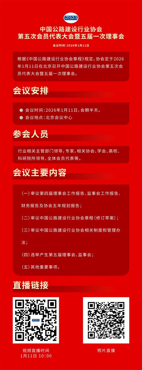 直播預(yù)告丨中國公路建設(shè)行業(yè)協(xié)會第五次會員代表大會暨五屆一次理事會