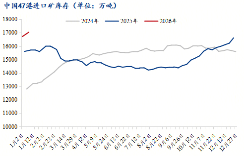 月度平衡表:Mysteel鐵礦石分析團隊12月31日預(yù)計,2026年1月份中國鐵礦石市場供大于求,47港鐵礦石庫存累庫。