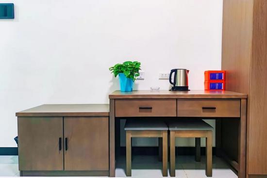 公寓房間寬敞明亮、布局合理,內(nèi)部設(shè)施一應(yīng)俱全。每間房均配備全套臥具備品、冷暖空調(diào)、書桌等基礎(chǔ)生活設(shè)施。