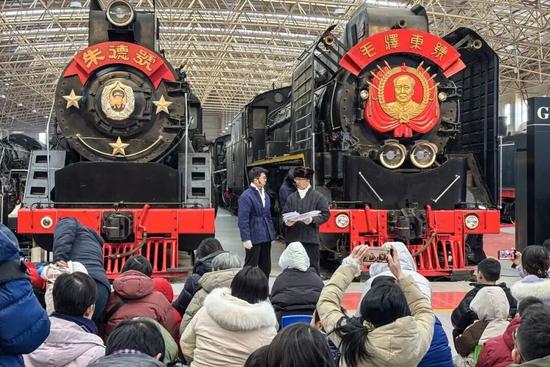 在展廳的中心位置,“毛澤東號”蒸汽機車靜靜矗立,講解員以清亮而充滿熱情的聲音,為觀眾揭開這臺功勛機車的傳奇序幕。