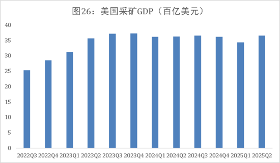 鎢的重點應用領域年度內發(fā)展較為穩(wěn)健。從汽車領域來看,汽車工業(yè)預計延續(xù)2023年以來的平穩(wěn)態(tài)勢,全年美國汽車產量預計為1037萬輛,同比小幅下降1.7%。礦用領域來看,2025年第二季度,美國礦業(yè)國內生產總值(GDP)增至3657億美元,同比增長0.9%,環(huán)比第一季度增長6.8%。2005年至2025年間,美國礦業(yè)GDP年均水平為2562.8億美元。