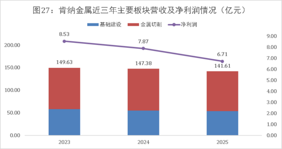 2025財年,受市場需求疲軟影響,肯納金屬整體業(yè)務表現(xiàn)持續(xù)下滑。財報顯示,公司全年實現(xiàn)營收141.6億元,同比下降3.9%;毛利率為30.4%,同比微降0.2%;實現(xiàn)凈利潤9.5億元,同比下降8.6%。