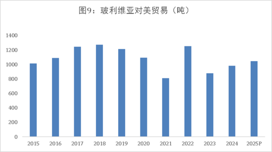 玻利維亞是美國主要的鎢精礦供應國,每年對美出口量維持在800-1000噸,是美國鎢精礦進口的最重要來源。除玻利維亞外,葡萄牙和西班牙也持續(xù)向美國供應鎢精礦,但兩國每年的出口量遠低于玻利維亞。