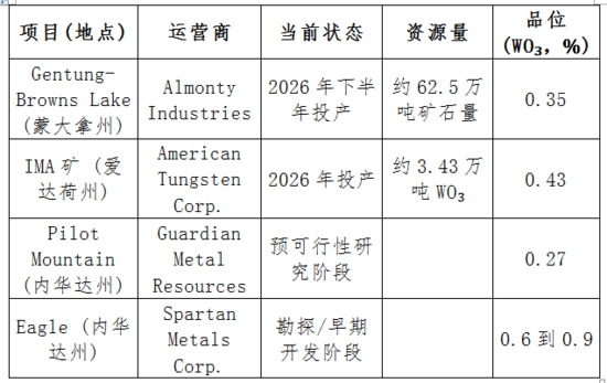 四座礦山無論品位還是資源量都相對有限,但普遍具有投產快的特點,根據(jù)計劃預計其中有三座(Gentung-Browns Lake、IMA和Pilot Mountain)在2026年投產。在當前鎢價偏高的階段,預計將進一步刺激投資方加快投資進度,快速實現(xiàn)投產盈利。